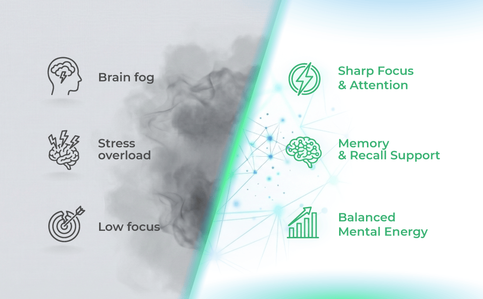 Clinically backed nootropic formula designed to support focus, memory, and mental clarity without the crash